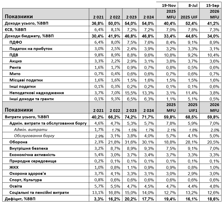 Консолідований бюджет 2021–2026, % ВВП. Джерело: Міністерство фінансів, Розрахунки UIF.