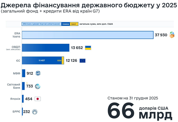 У грудні 2025 року Україна отримала зовнішнє фінансування за наступними джерелами: