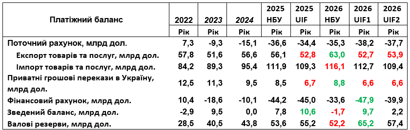 Платіжний баланс 2022–2026. Факт 2022–2024 НБУ, Прогноз 2025, 2026 НБУ та UIF