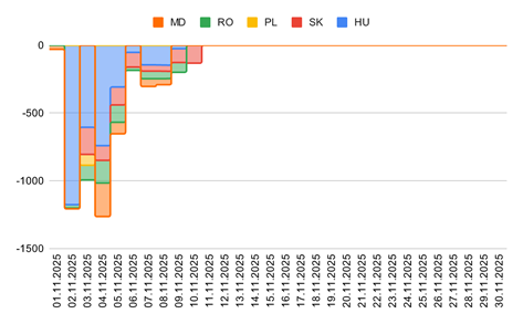 Тим часом дефіцит потужностей, спричинений російськими ударами, зупинив експорт електроенергії. Експорт електроенергії не здійснювався з 11 листопада.