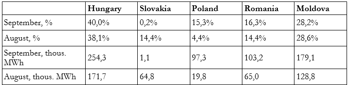 Electricity exports from Ukraine reached a new high in September at 635.1 thousand MWh, representing a 41% increase from August. As a reminder, August was also a record month for exports, with trade volume nearly 60% higher than in July.