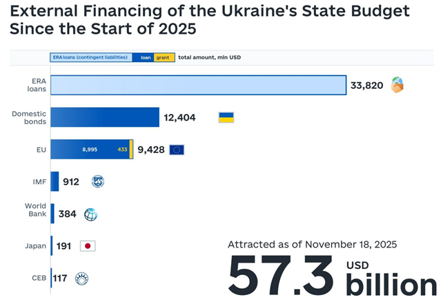In November 2025, Ukraine received external financing from the following sources: