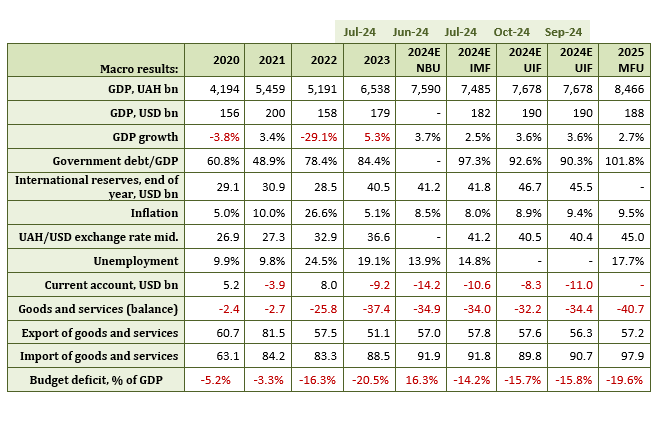 6) In 2024, the IMF forecasts a total of USD 12.1 billion in grants (USD 7.8 billion from the US and EUR 3 billion (USD 3.3 billion) from the EU. + 1 billion in grants to Ukraine from Japan and Norway in early 2024). Thus, Ukraine will receive more grants than in 2023 (USD 12.1 billion vs. USD 11.4 billion). However, due to devaluation, grants are projected at UAH 502 billion vs. UAH 443 billion in 2023 (+59 billion).
