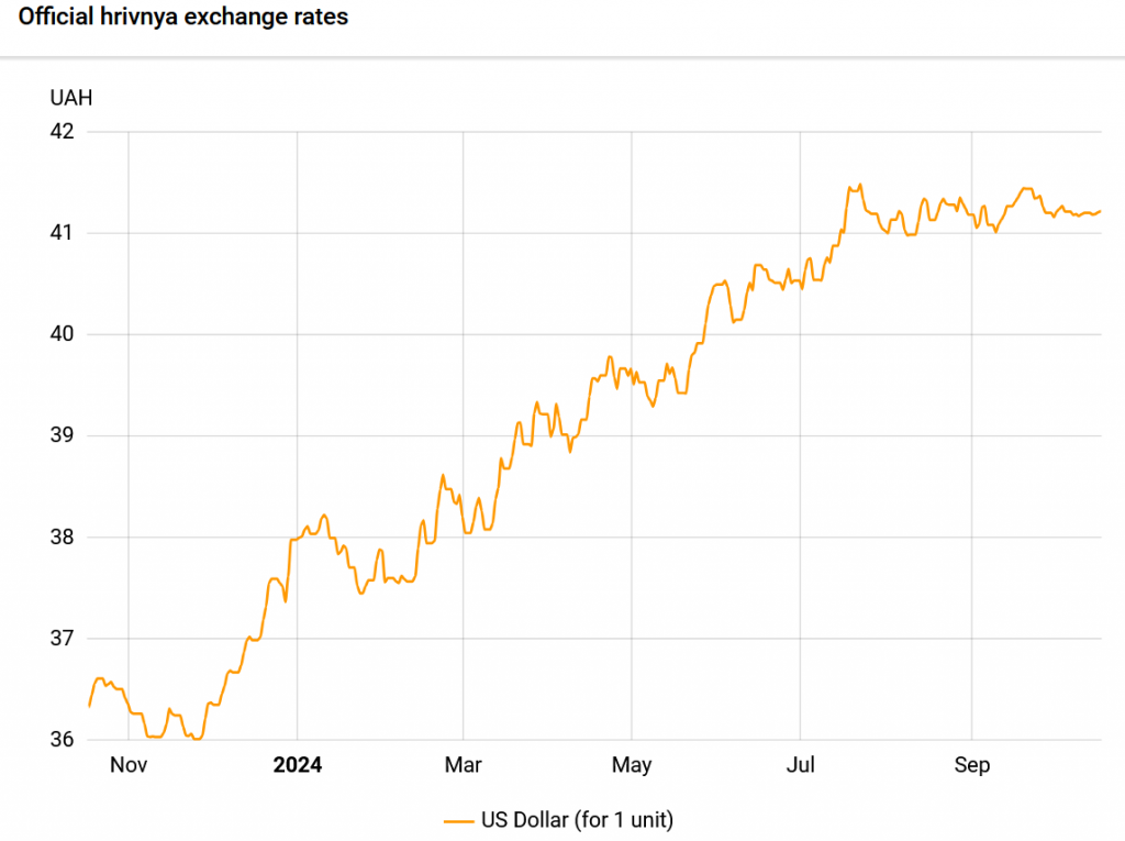 Since the beginning of August, the hryvnia exchange rate against the US dollar has stabilized in the UAH 41-41.5 per dollar range.