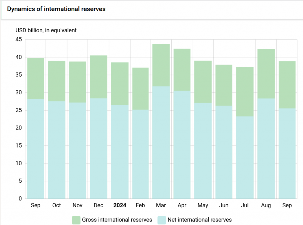 International reserves in September 2024 fell from USD 42.3 billion to USD 38.9 billion.