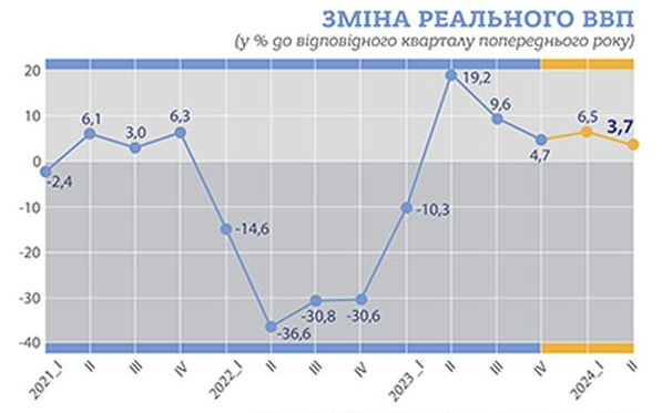 Ukrstat estimates GDP growth at 3.7% in the second quarter of 2024.