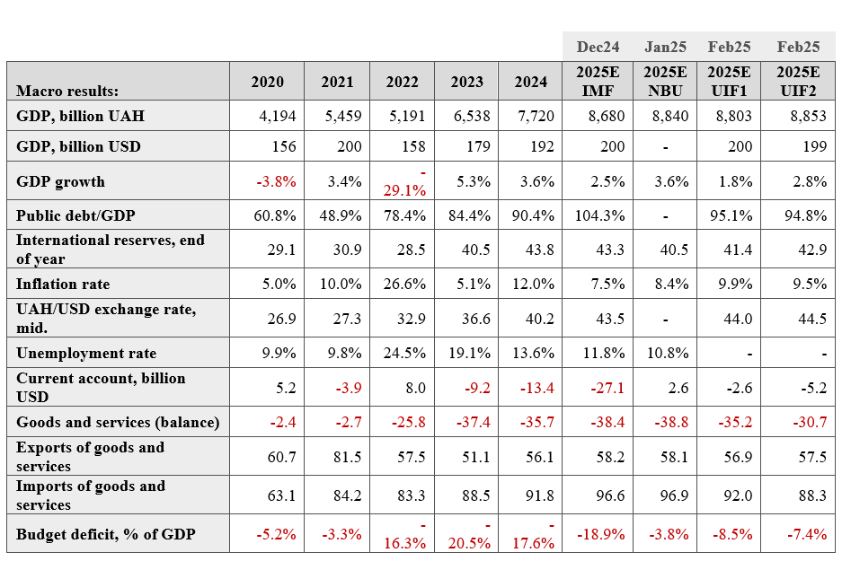 Nominal GDP Data for 2024 – from the Latest NBU Report (January 2025). GDP Growth Data – Estimates by the Ministry of Economy and UIF.