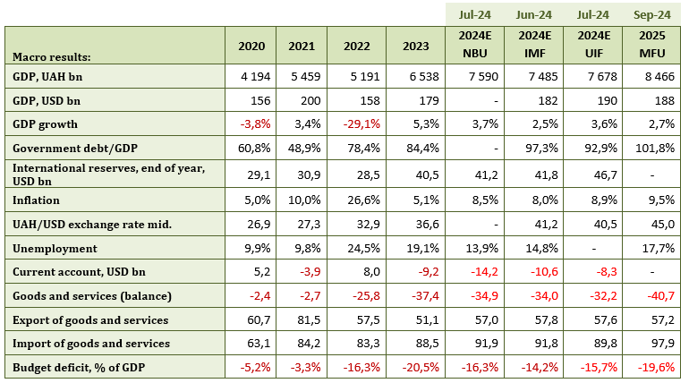 Late September: Updated IMF forecast based on the results of the fifth review of the arrangement with Ukraine.