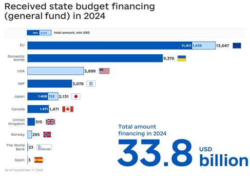 Ukraine received USD 24.6 billion in external financing in the first eight months. Of this, USD 6.6 billion were grants, and USD 17.9 billion were loans.