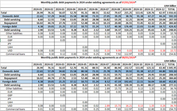 As of August 1, Ukraine’s public and guaranteed debt amounted to USD 155 billion (+ USD 10 billion for seven months of 2024).