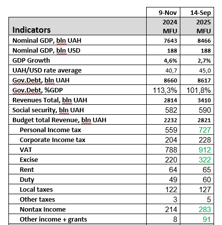 The 2025 budget assumes economic growth of 2.7% of GDP. Consumer inflation of 9.5%. An increase in the average hryvnia-dollar exchange rate from 40.8 to 45 and a rate of 48 hryvnia to the euro in 2025.