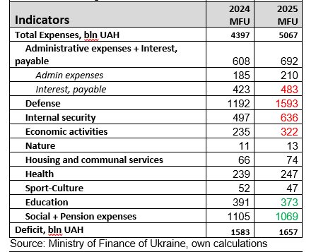 The budget deficit is to be covered by domestic borrowing at rates of 15-17% in hryvnia, which will significantly increase debt servicing costs.