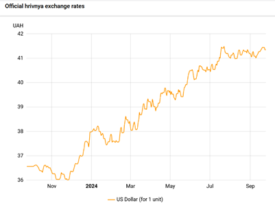 In August and early September, the hryvnia exchange rate against the US dollar stabilized in the range 41-41.5 hryvnia to the dollar.