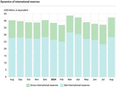 International reserves increased from USD 37.2 billion to USD 42.3 billion in August 2024.