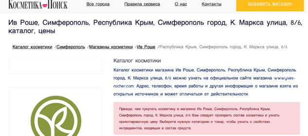 Even though in the official list of boutiques on the Yves Rocher website there are no addresses of stores in the Autonomous Republic of Crimea, they are easily detected through search resources and, it seems, the company does not plan to do anything about it.