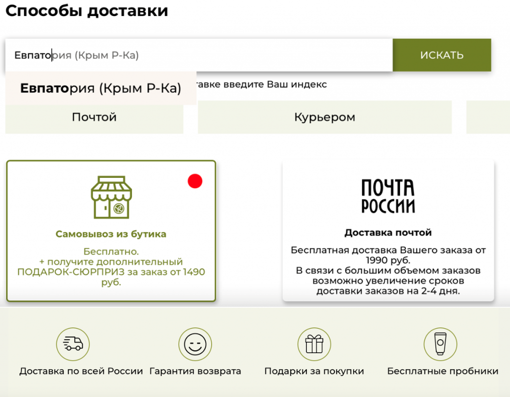 Figure 4 (Delivery information from the official website of the https://www.yves-rocher.ru/delivery)