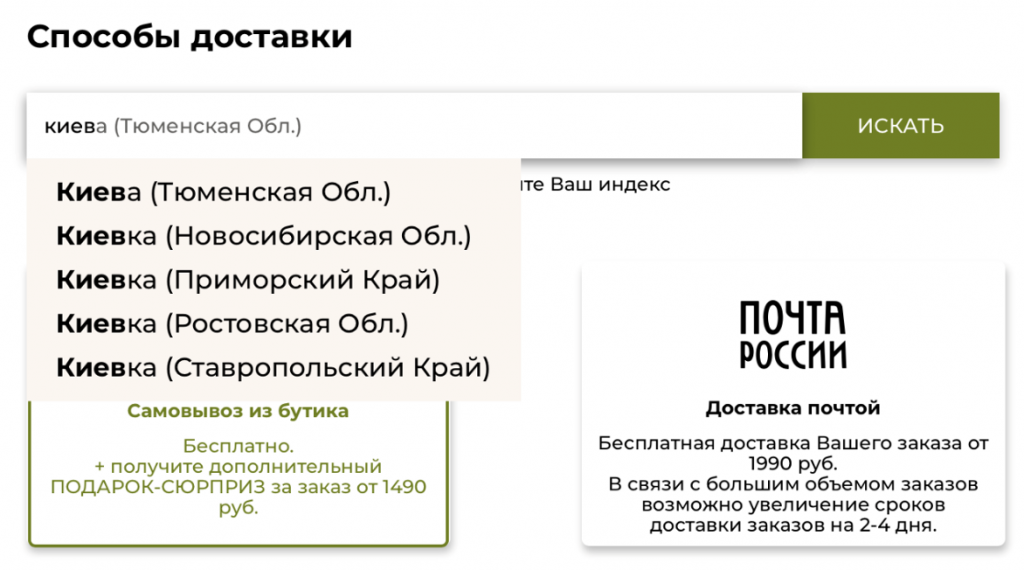 It is noteworthy that the site service limits the user’s choice only to the name of the city, indicating the status of the territories independently.
