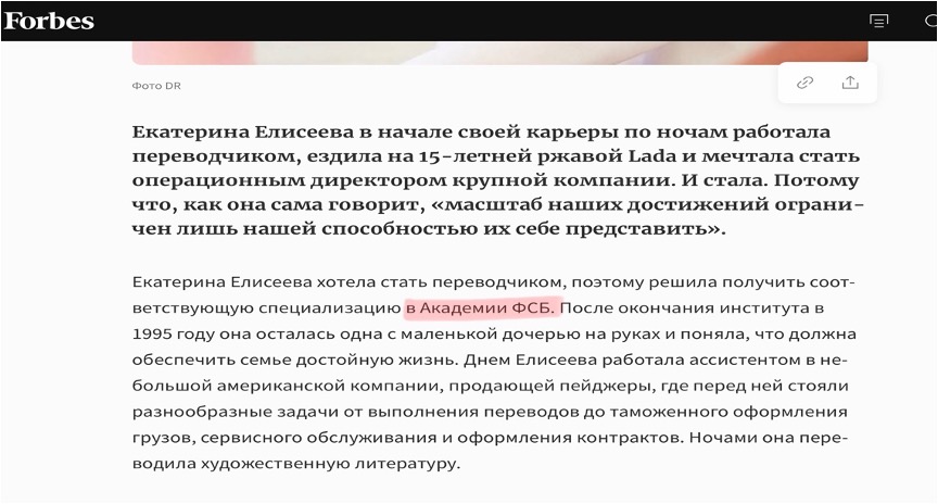 And from publications from open sources, in particular the Forbs publication, users found that Ms. Kateryna dreamed of becoming a translator, and therefore received a specialization at the KGB Academy, and their public page is still  in the circle of their interests.