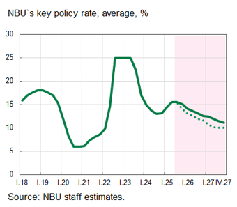 The updated NBU forecast already provides for a longer maintenance of the key policy rate at 15.5% (until Q4 2025) and for a slower rate cut compared to the April forecast.