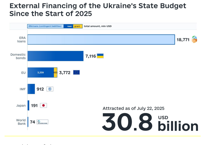 In July 2025, Ukraine received EUR 1 billion in external financing from the EU under the ERA program (from proceeds on frozen Russian assets).