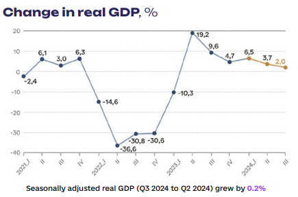 In the 3rd quarter of 2024, according to preliminary data, GDP growth amounted to 2% of GDP – the worst performance in the last 1.5 years.