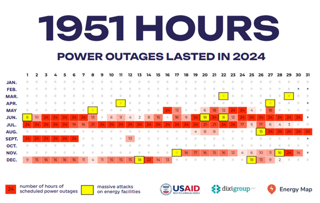 In reality, the blackouts in 2024 turned out to be much better than expected in the summer. The scheduled power outages took effect for 1951 hours in 2024. The peak of power outages occurred in June and July when Ukraine experienced very high air temperatures.