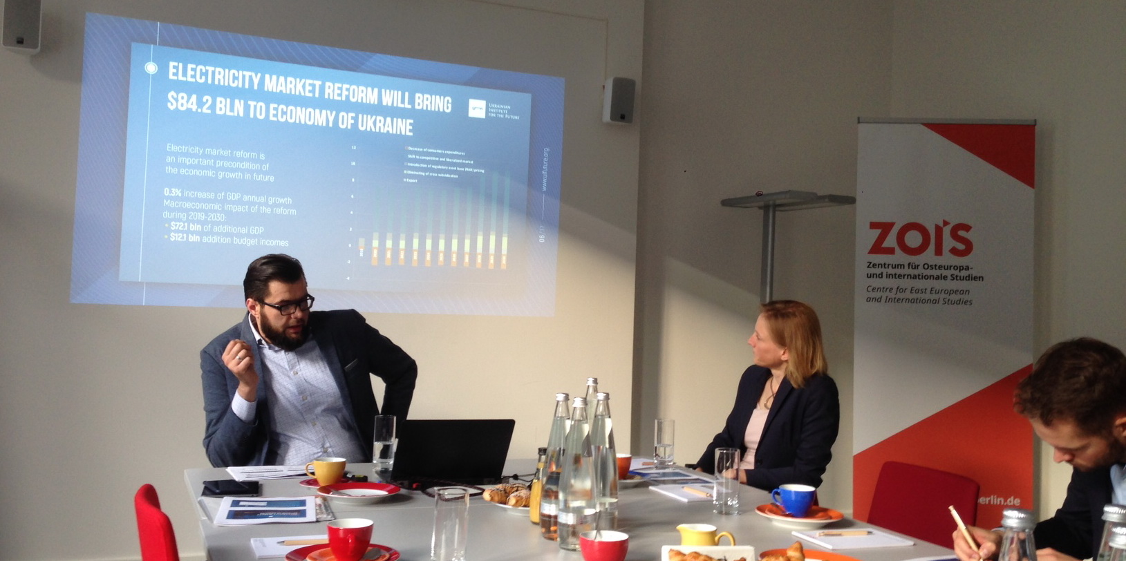 8 листопада у Центрі східноєвропейських та міжнародних досліджень (Zentrum für Osteuropa – und internationale Studien, ZOiS) відбулась перша презентація доповіді «Реформування ринку електроенергії в Україні: виклики та можливості», що була розроблена Українським інститутом майбутнього. Доповідь в основному була зосереджена на здійсненні макроекономічних оцінок проведення та непроведення реформ ринку електроенергетики в Україні до 2030 року.