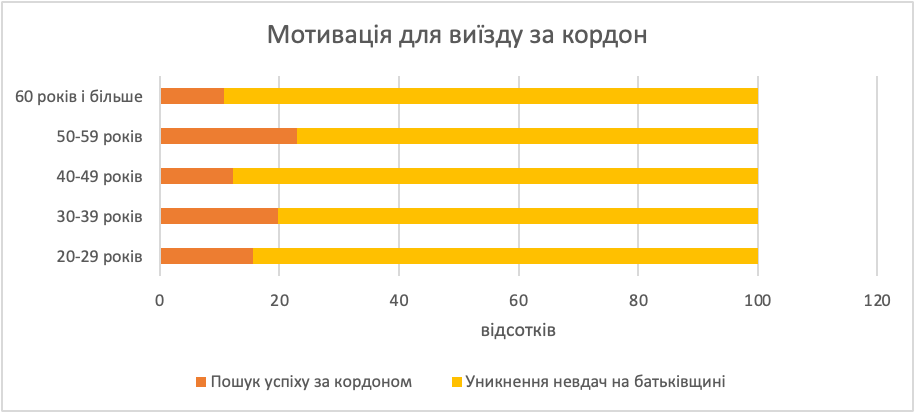 Дані опитувань говорять, що на той момент міграція за кордон була вмотивована, переважно, бажанням уникнути невдачі на батьківщині. Лише кожен шостий респондент (16%) повідомив принаймні про один мотиваційний чинник, що можна віднести до групи прагнення до успіху. Наразі, в останню хвилю міграції цей тренд збережеться, але відсоток тих, хто буде прагнути досягти успіху за кордоном точно зросте, бо кількість вмотивованих на успіх українців за кордоном стала більшою.