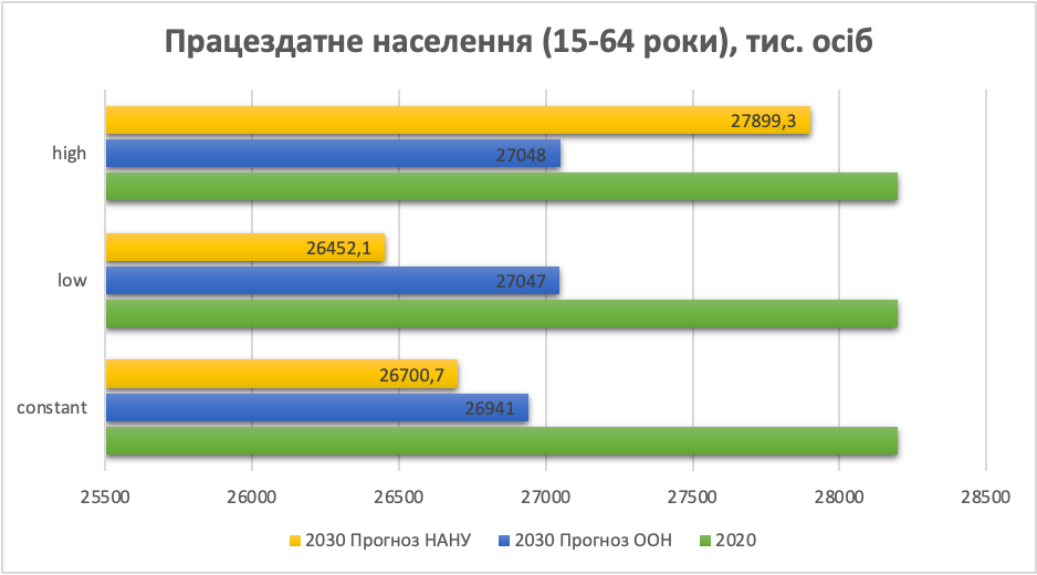 За прогнозами демографів, постійне населення України буде зменшуватися, що доволі скоро призведе до вичерпання трудового потенціалу країни. Сучасні дослідження ще до останньої міграційної хвилі вказували на існування проблеми нестачі кадрів на українському ринку праці. Якщо демографічна ситуація в Україні залишиться на поточному рівні, за наступні десять років кількість працездатного населення зменшиться на 4,5 – 5,5%, а якщо вона погіршуватиметься, а цьогоріч ми очікуємо чи не на найнижчу народжуваність за всі роки незалежності, то втрати перевищать 6%. За прогнозом МВФ така втрата працездатного населення не дозволить українському ВВП зростати швидше 2,5% на рік.