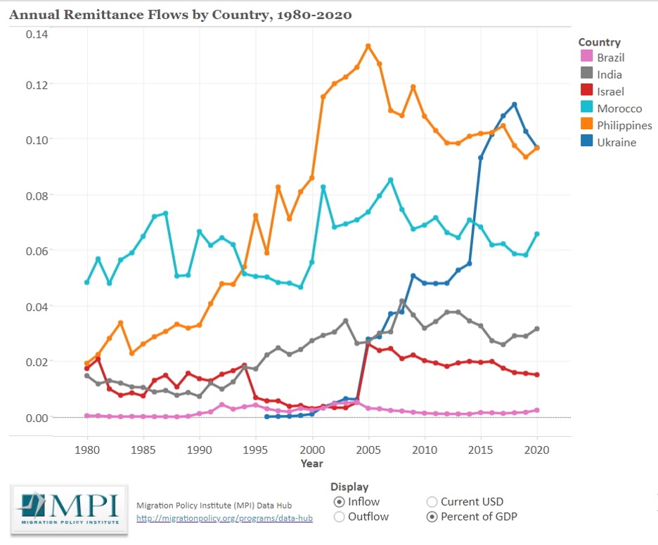 Перекази заробітчан у 2020-му році принесли Україні 12 млрд дол., але якби ці люди працювали в Україні, вони забезпечили б внесок у ВВП у розмірі щонайменше 30 млрд дол. Навіть за три перші місяці цього року приватні перекази від українців, що працюють за кордоном практично не знизилися: січень-березень 2022 – 962 млн дол., січень-березень 2021 – 1 млрд дол.