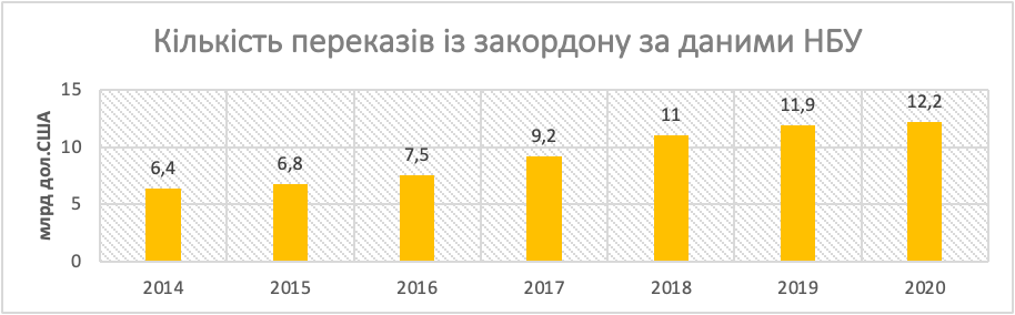 Ще одним показником, який красномовно говорить нам про зростання трудової міграції з України є обсяги грошових переказів, які надходять від заробітчан. За даними НБУ, починаючи з 2014 року кількість переказів із закордону постійно збільшується: