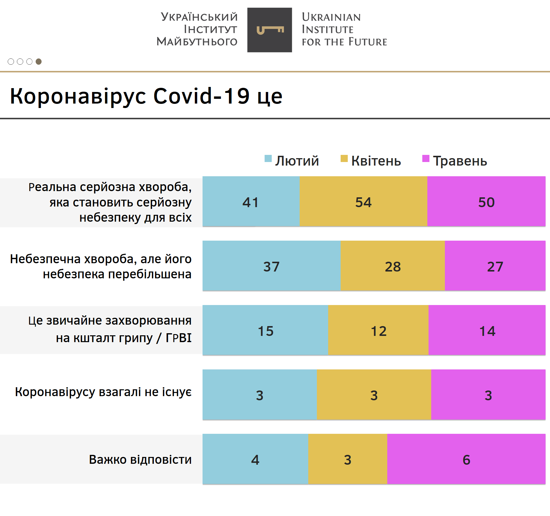 За чотири місяці дослідження зафіксовано тенденцію: із підвищенням рівня освіти, респонденти частіше називають коронавірус небезпечною хворобою і рідше звичайним ГРВІ.
