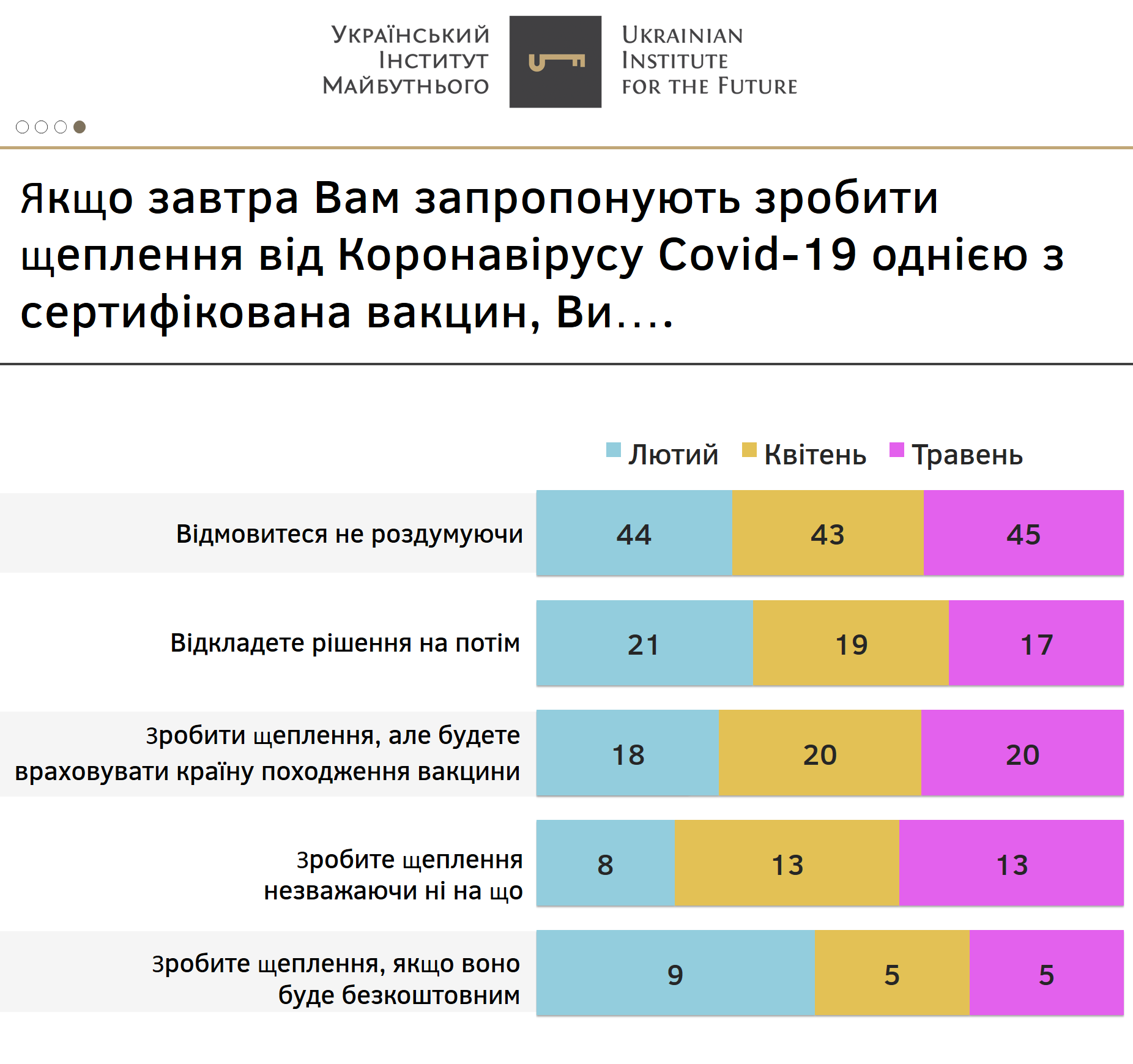 Зафіксована за чотири місяці дослідження схильність молоді менш серйозно ставитися до небезпеки коронавірусу корелює з іншою зафіксованою тенденцією: молоді люди менше готові вакцинуватися, порівняно з старшим поколінням.