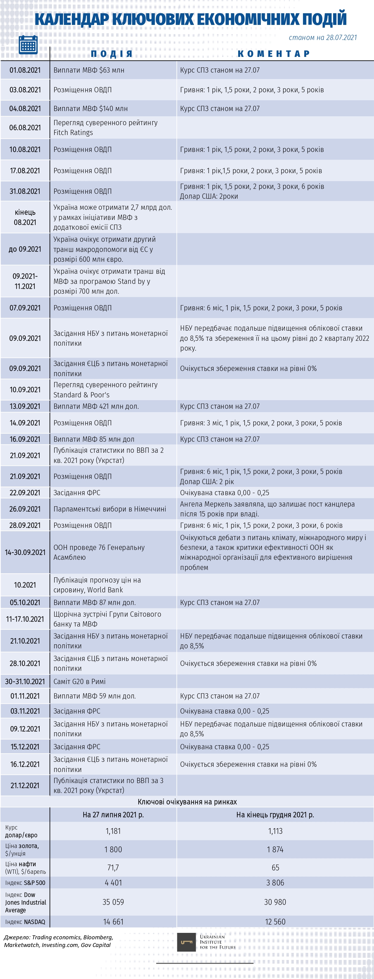 КАЛЕНДАР КЛЮЧОВИХ ЕКОНОМІЧНИХ ПОДІЙ