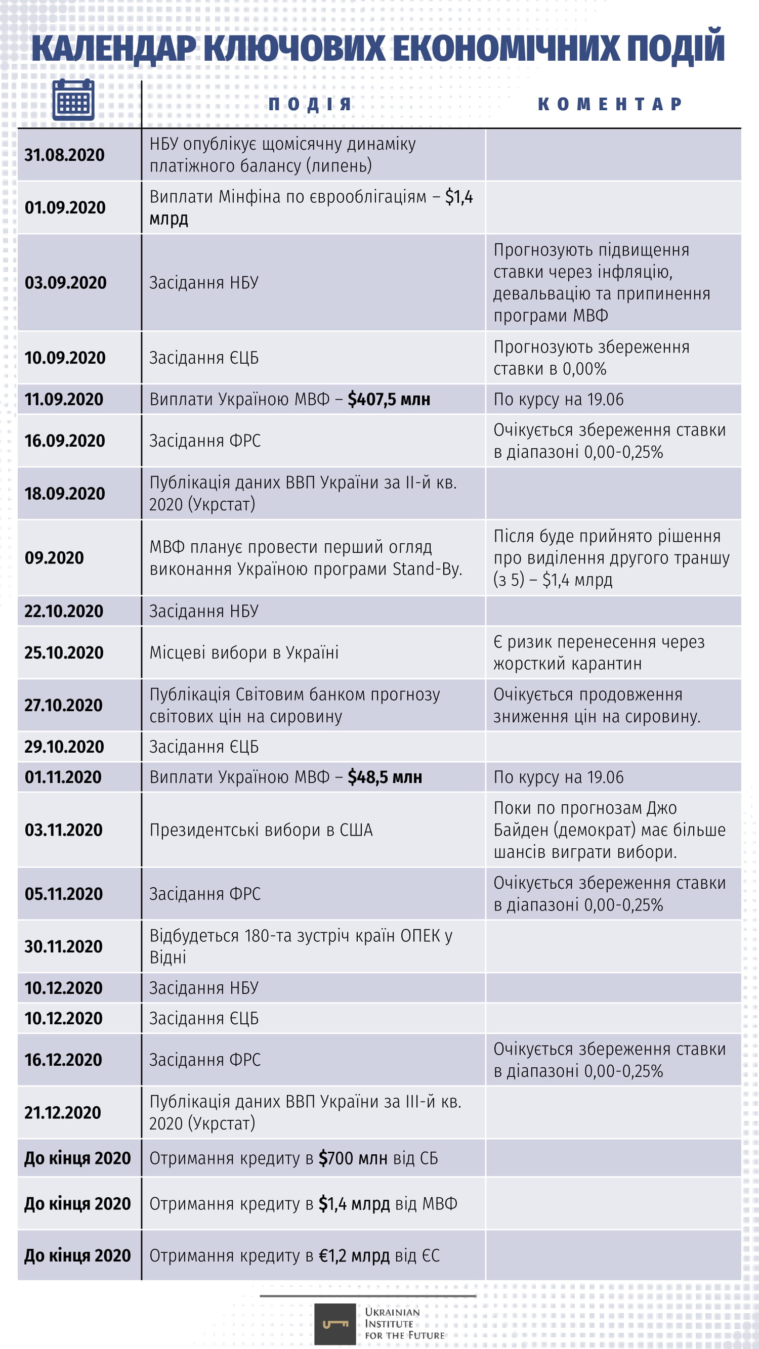 КАЛЕНДАР КЛЮЧОВИХ ЕКОНОМІЧНИХ ПОДІЙ