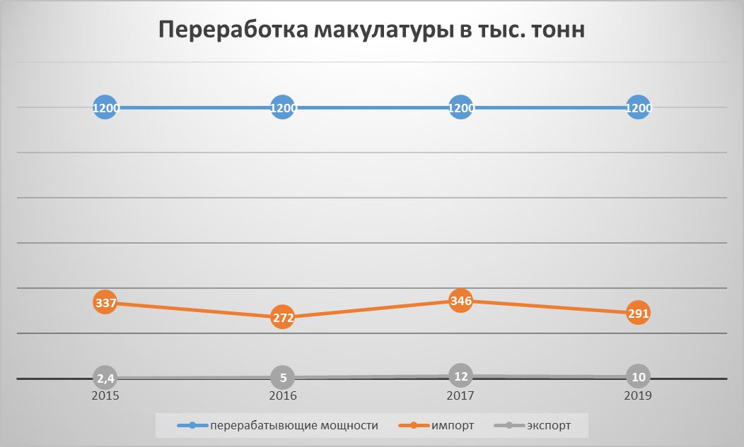 Наші сусіди по колишньому союзу, які згідно з радянською плановою економікою поставляли до України макулатуру на переробку, почали активно нарощувати власні потужності із переробки. Так, у Росії з 2000 року збільшили потужності в 11 разів і тепер з 350 тис. тонн переробляють 4 млн тонн макулатури у рік на 80 заводах.