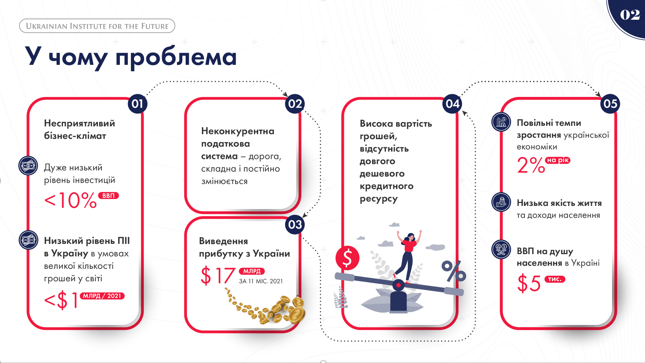 «Сьогодні Україна – об’єкт глобальної та регіональної політики, бідна країна з ВВП на душу населення $5 тис. (оцінка UIF 2021). Для порівняння: ВВП на душу населення у Туреччині 2021 – $9 тис., у Польщі – $17 тис. Через проведення ліберальної податкової реформи Україна може запустити зростання економіки і, зрештою, стати сильною державою з високою якістю життя її громадян, суб’єктом міжнародних відносин», – зазначив Анатолій Амелін.