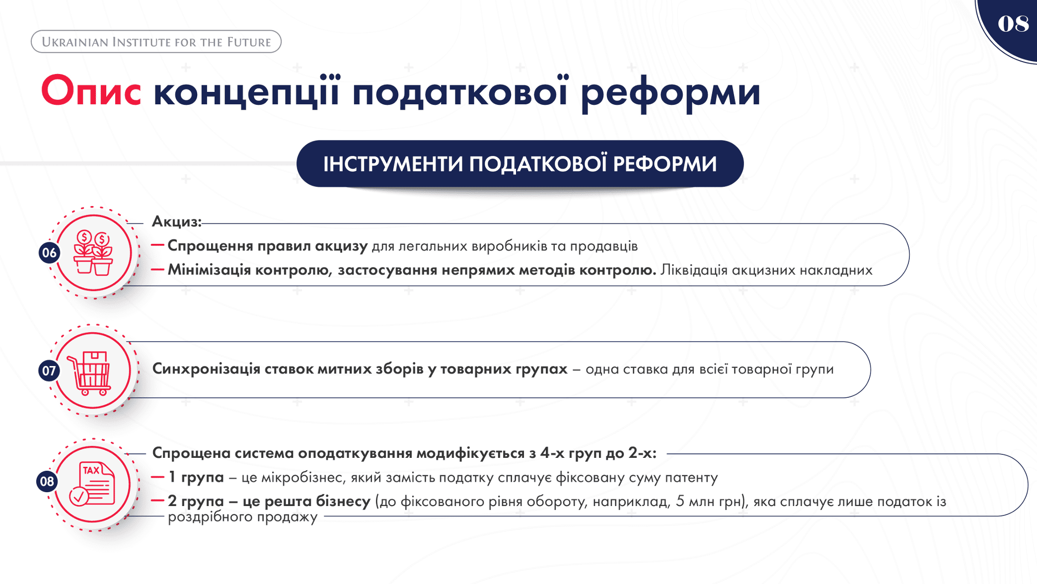 Крім того, вони визначили головні інструменти податкової реформи, а саме: