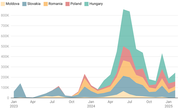 Станом на кінець звітного тижня значно активізувалися бойові дії на Курському напрямку та на державному кордоні в межах Сумської області. Росія минулого тижня перекинула до Курської області один із найефективніших підрозділів безпілотників – Центр передових безпілотних систем «Рубікон», а також сотні північнокорейських військових разом з елітними підрозділами – морською піхотою та десантниками.Характерною рисоюстав початок активного наступу РФ в той момент, коли адміністрація президента США Дональда Трампа припинила постачати Україні розвіддані та військову допомогу загалом.