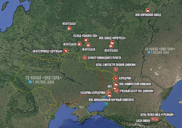 нанесенням Силами оборони України (далі – СОУ) ударів по об’єктах на території РФ та тимчасово окупованих територіях (далі – ТОТ);