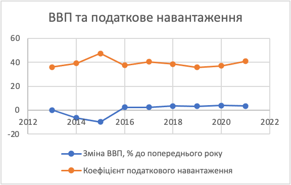 Перше, на що хочеться звернути увагу – коливання рівня податкового навантаження з року в рік. Вони, з одного боку, говорять про несталі темпи зростання ВВП, а з іншого – про хронічні зміни у податковому законодавстві країни.