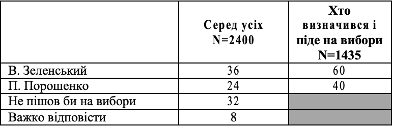 Якби В.Зеленський зустрівся у другому турі з П.Порошенко, %