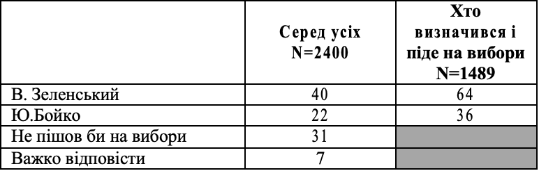 Якби В.Зеленський зустрівся у другому турі з Ю.Бойко, %