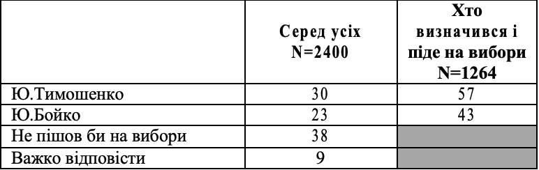 Якби Ю.Бойко зустрівся у другому турі з Ю.Тимошенко, %