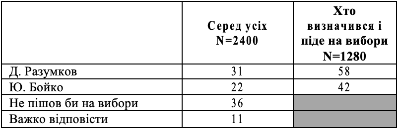 Якби Д.Разумков зустрівся у другому турі з Ю.Бойко, %