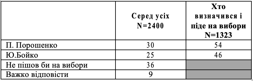 Якби П.Порошенко зустрівся у другому турі з Ю.Бойко, %