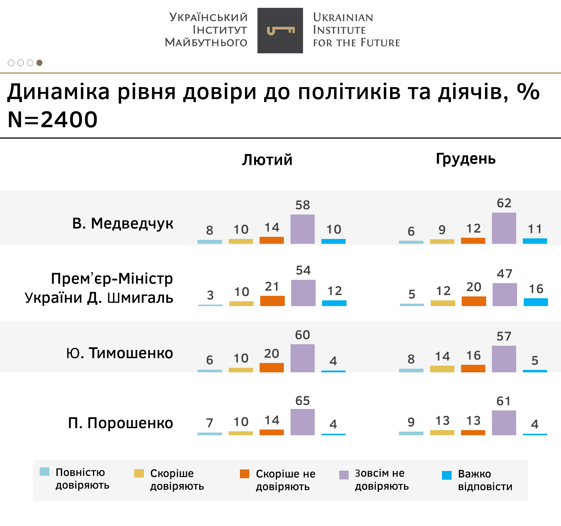 Український інститут майбутнього (UIF) спільно з соціологічною компанією «Нью Імідж Маркетинг Груп» провів соціологічне дослідження “Рейтинги і антирейтинги політиків. Соціологічні підсумки 2021 року” за методикою face-to-face серед 2400 респондентів у період з 28 листопада по 10 грудня 2021 року.