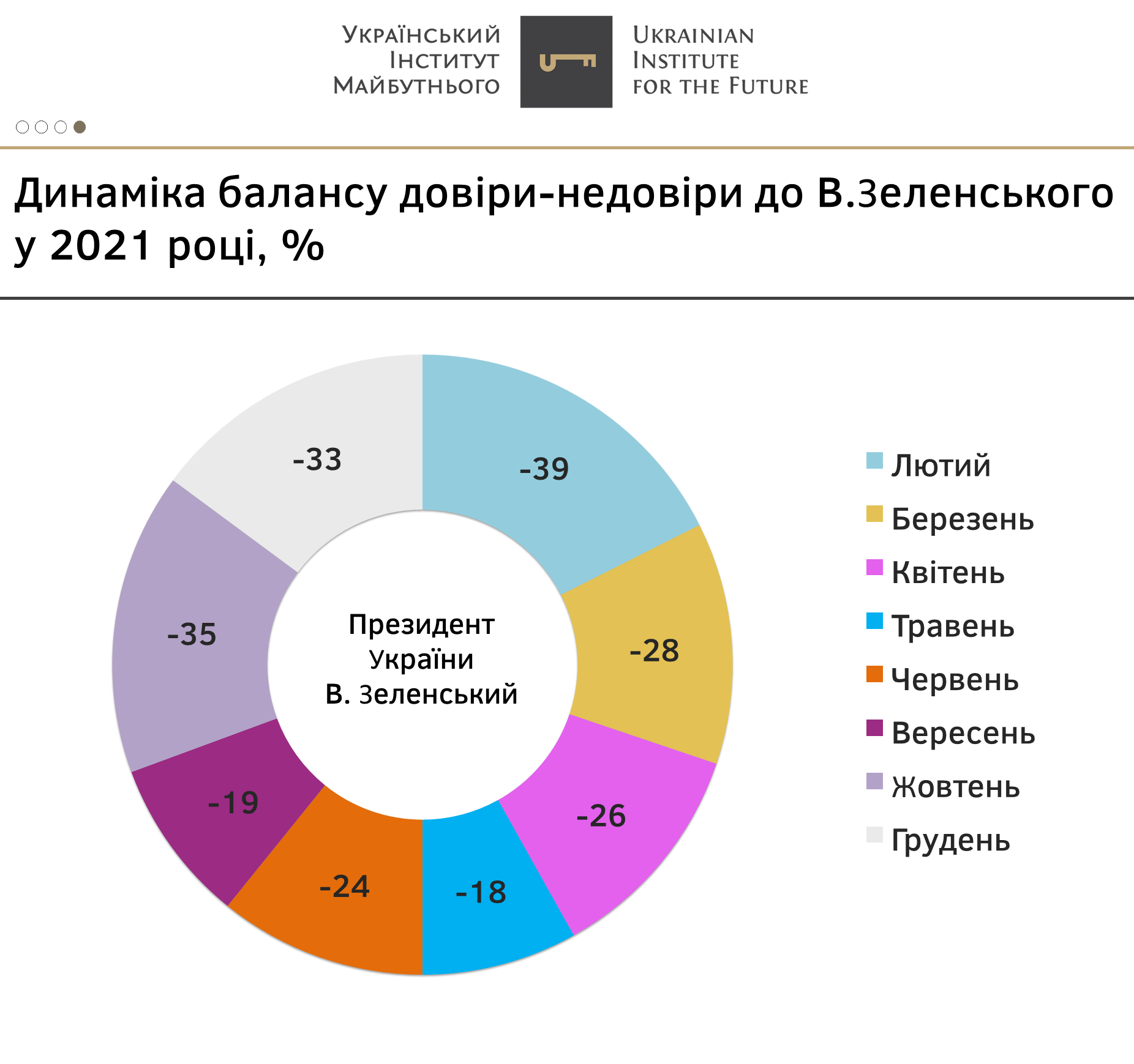 - Найнижчі показники довіри впродовж 2021 року має Верховна рада (-69%).