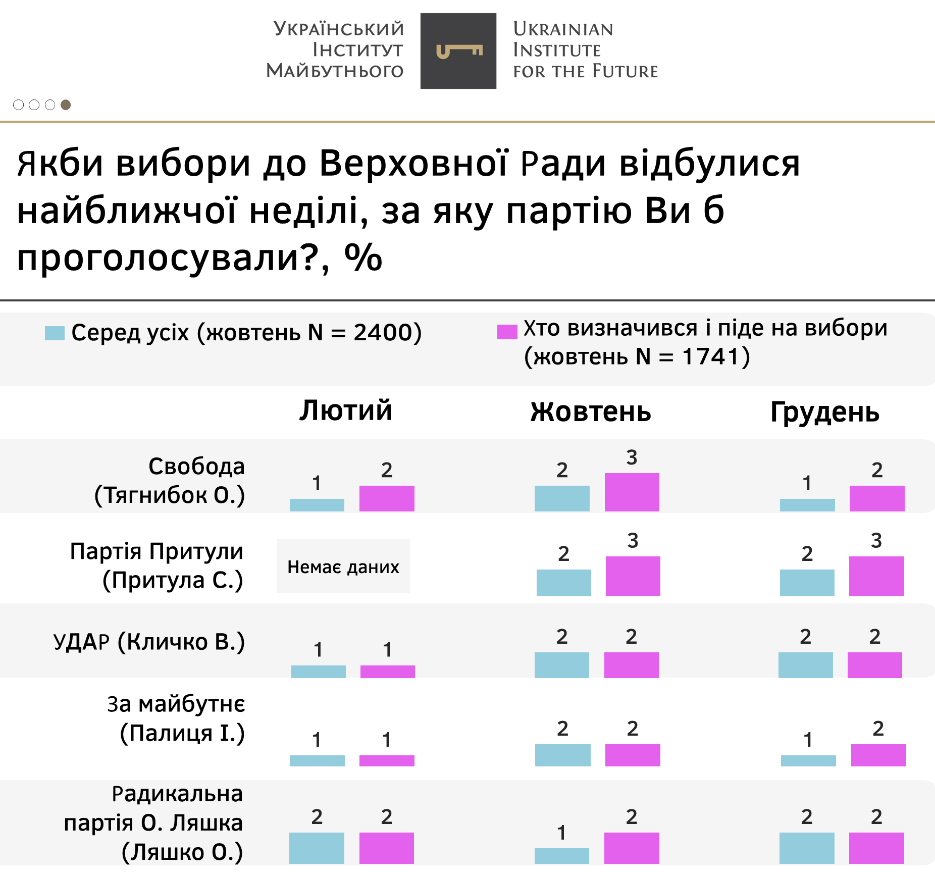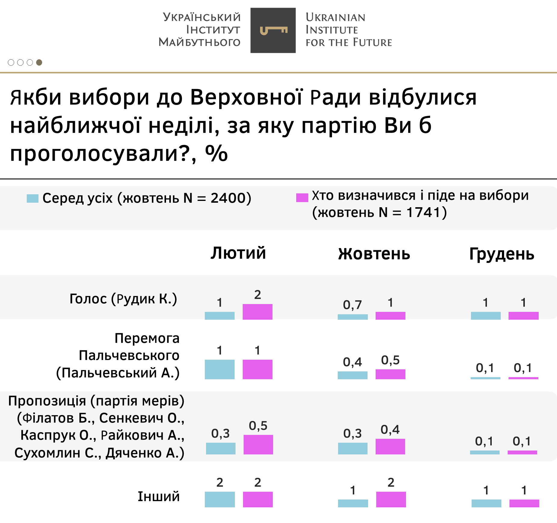 - Дві інші партії – «Європейська солідарність» та ВО «Батьківщина» – фактично зберегли рейтинги тими самими, що і на початку року.
