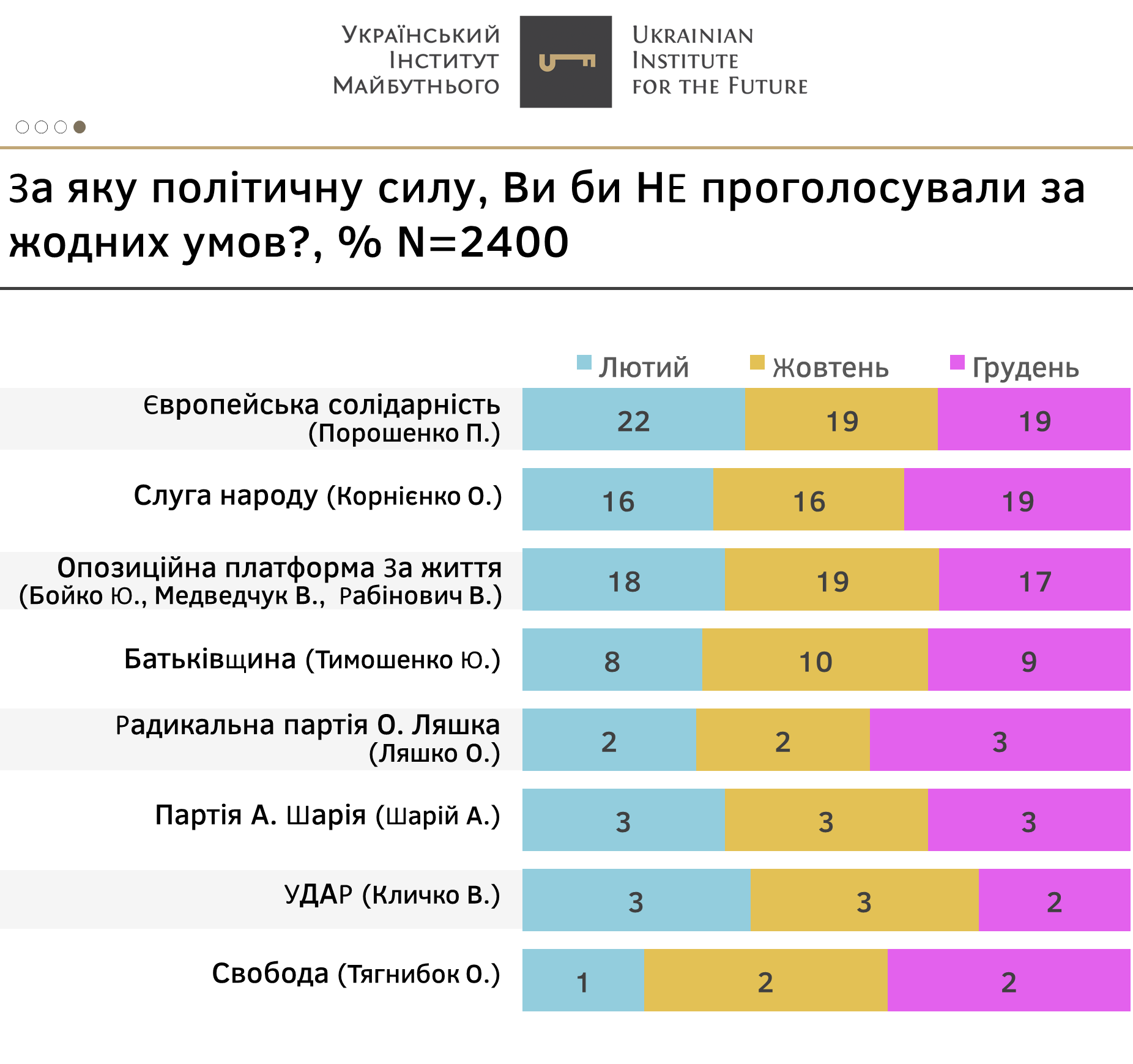 - Натомість «Опозиційна платформа за життя» зменшила свій антирейтинг, особливо порівняно з весною цього року, коли він сягав 29%, до 17% у грудні.